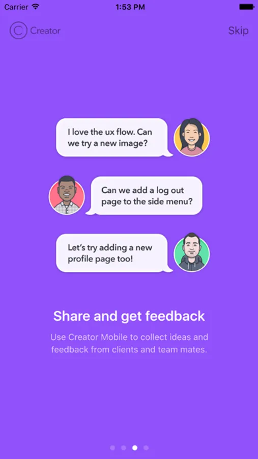 Experience your Creator prototypes like native apps, without any browser bars or unnecessary UI to get in the way. With a minimal and focused feature set, it’s an intentionally simple app that’s a joy to use.
