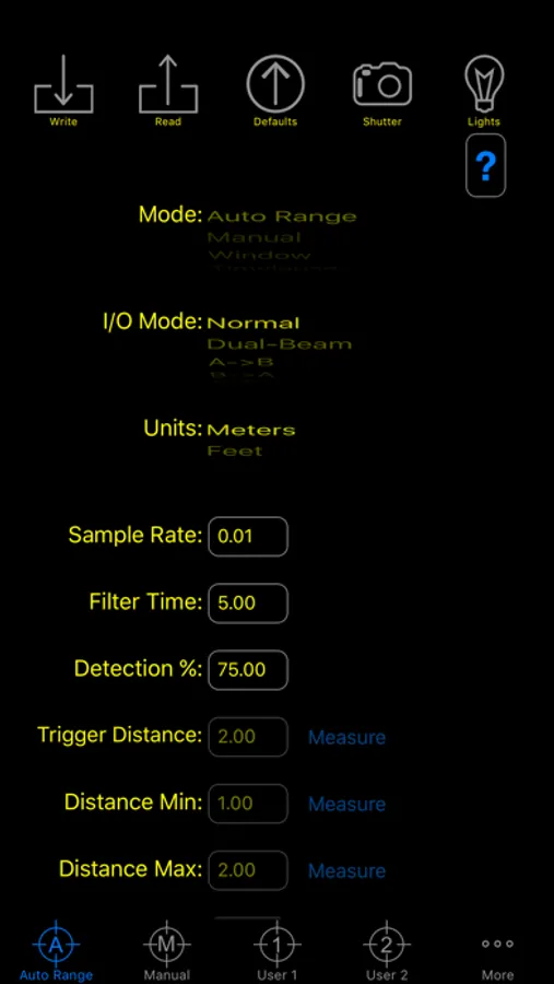This app allows you to adjust all the settings for your Cognisys Sabre photography sensor, including: Range, trigger mode, sample rate, cross-beam functionality, bulb mode, number of shots, and much more.