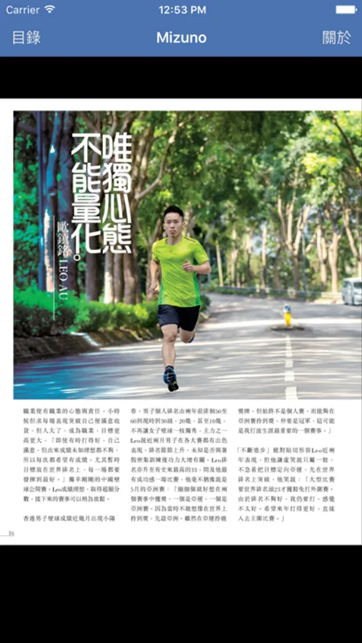 本Apps詳盡分析Mizuno最新鞋款的構造,並有不同的運動精英分享他們辛酸的故事,喜愛跑步的你,想選一對更好的包鞋就千萬不要錯過。