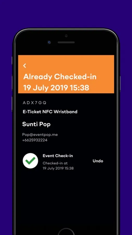 Allowing organizers to scan any ticket created by eventpop through your smartphone camera, our system also automatically prevents the reuse of another ticket.