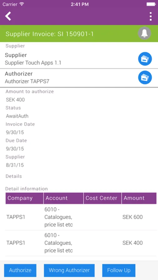 In its current version IFS Notify Me will notify you about new purchase requisitions, purchase orders, supplier invoices, and travel expenses waiting for your authorization.