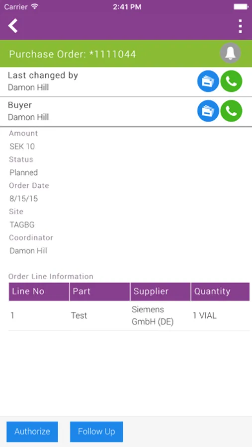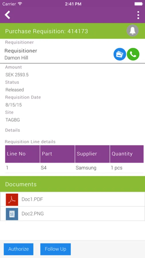IFS Notify Me tells you when there are new business events requiring your attention and action. The notifications are shown in a single unified list where you can view details and take action such as Approving or Authorizing immediately. Additional features include possibility to Follow Up at a later time up by creating a reminder task in IFS Applications, and calling or e-mailing the relevant contact person directly from within IFS Notify Me.