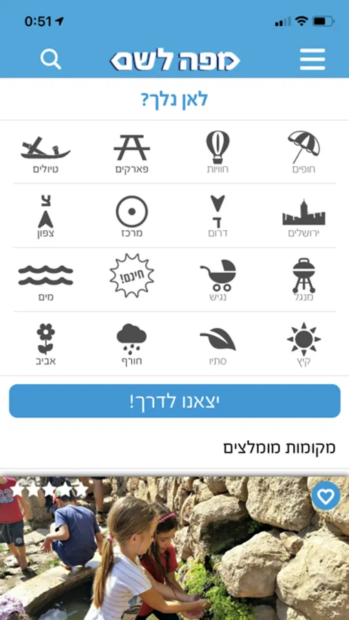 - סינון נוח וידידותי על פי קטגוריות שונות כמו אזור, עונה, סוג הבילוי, מים, מנגל וחינם.
