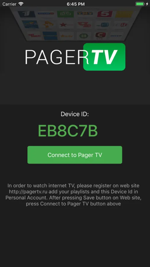 Application "Pager TV" for iOS allows you to watch *.m3u playlists on iPad/iPhone the same as "Pager TV" application for Apple TV. To use the application you will need to register on web site http://pagertv.ru and add your own *.m3u playlists with content.