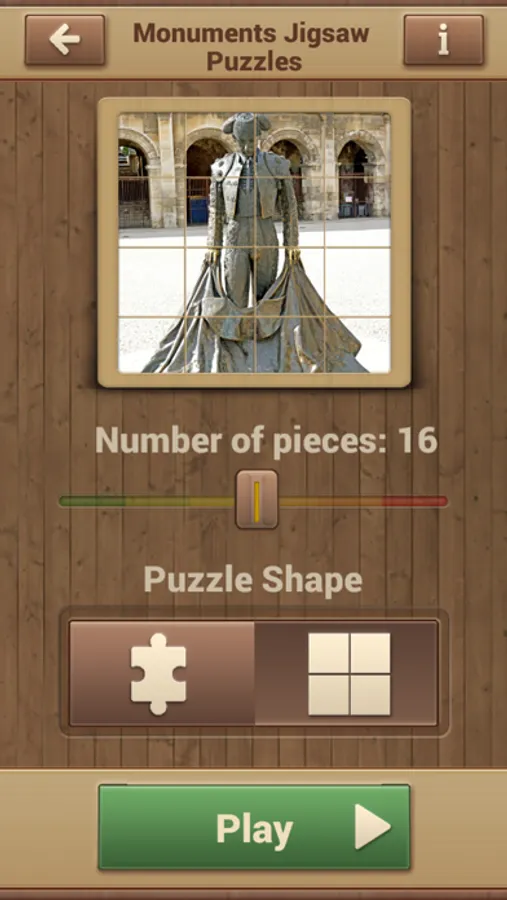 Monuments Jigsaw Puzzles provides the following options: