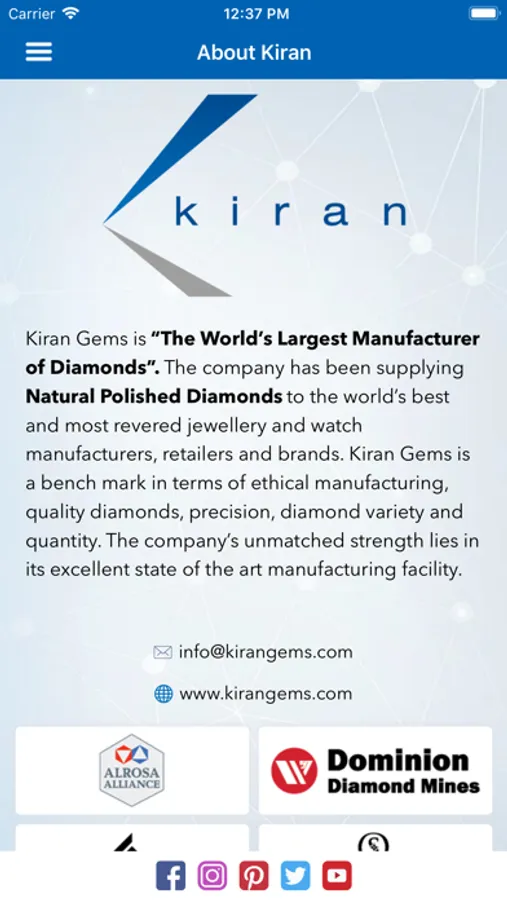 The app is from Kiran Gems Private Limited- The world’s largest manufacturer of diamonds.