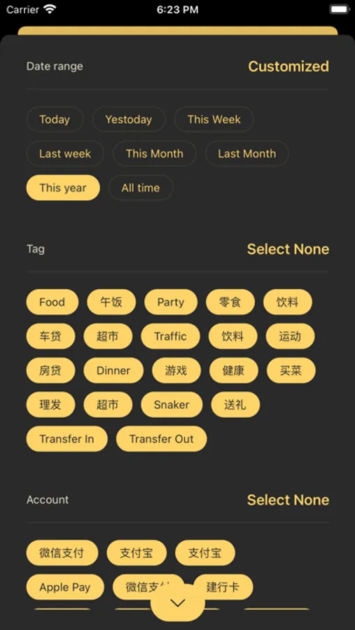 For those who love to travel, you can directly record in various currencies. More convenient is that it will be automatically converted to your default currency in the statistics.