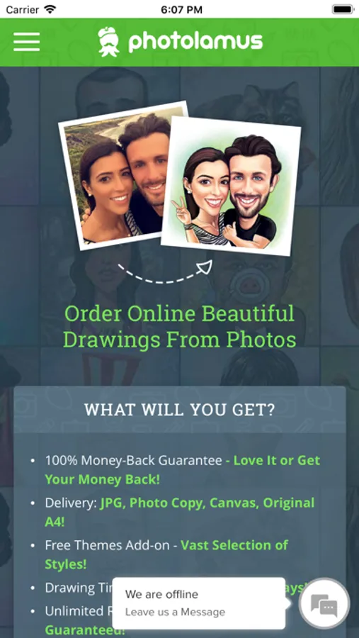 Get 100% hand drawn caricatures and portraits drawn from your photos by professional artists from all over the world!