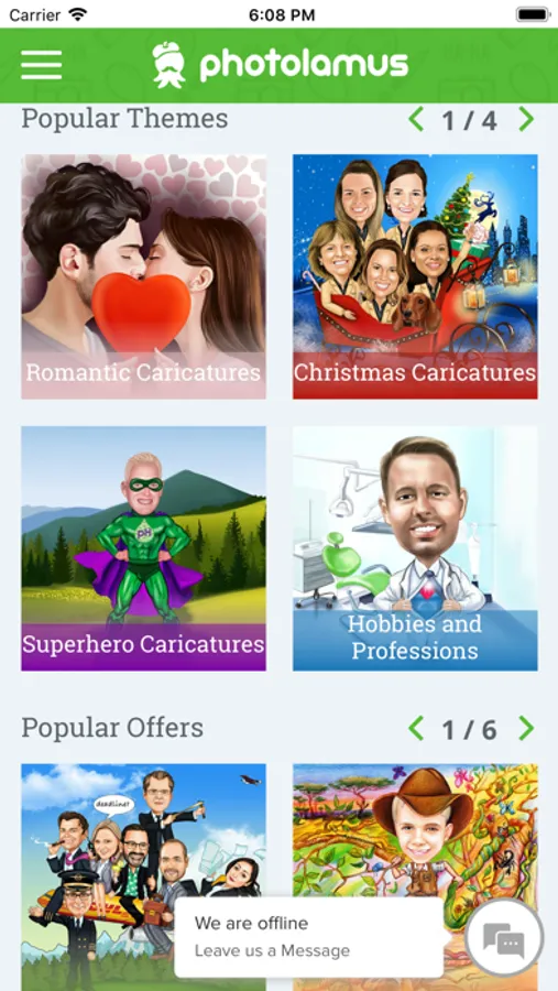 > FREE Themes applied in moments: Superhero caricatures, Romantic caricatures, Business avatars, Wedding caricature gifts and many more!