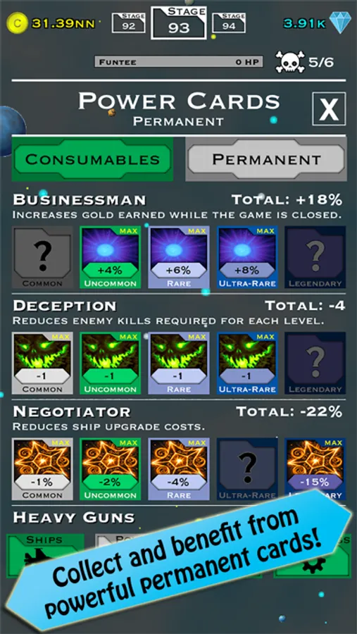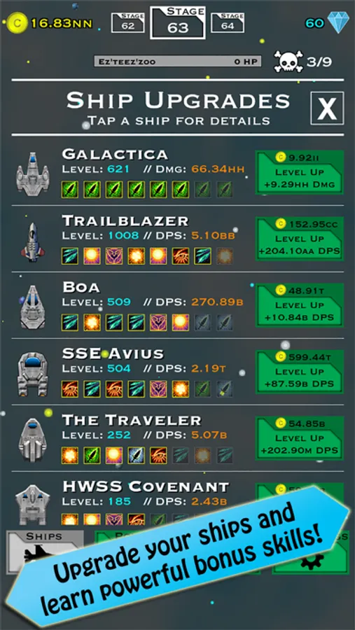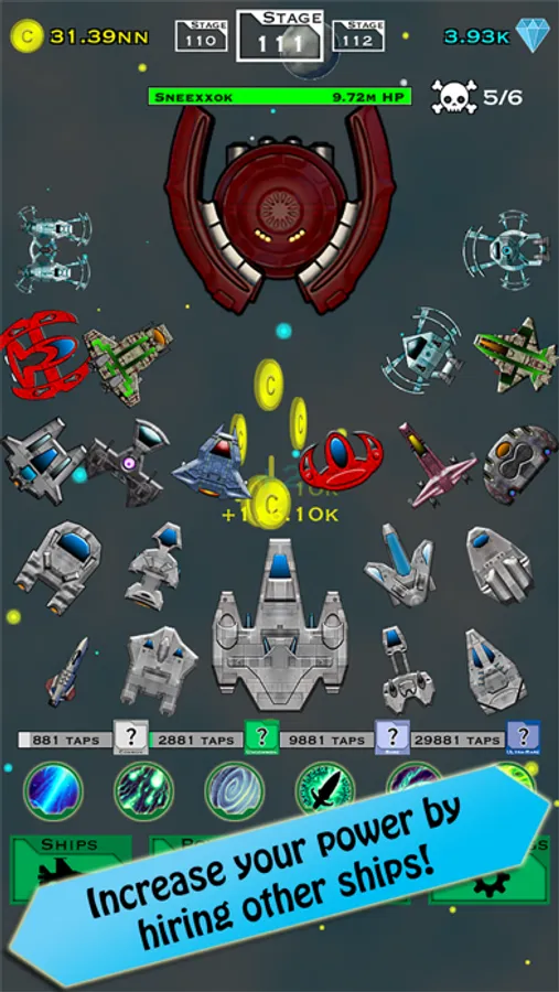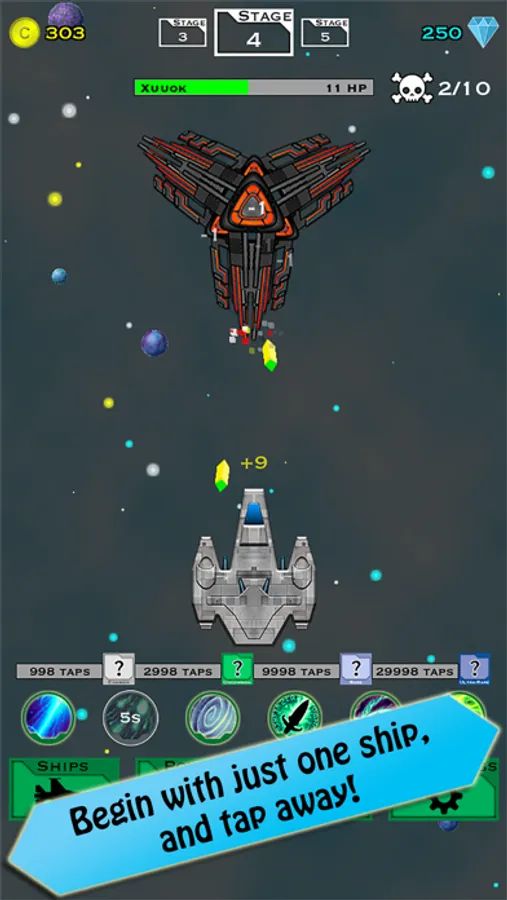 Set in the infinite vacuum of space, begin the game with just one weak ship, but quickly tap your way to an infinite amount of wealth, power, and numerous ally ships to aid you in your efforts. When the game slows down, Prestige to reset your game for a huge reward. Use your reward to collect Power Cards that give powerful bonuses and allow you to progress further and quicker than before.