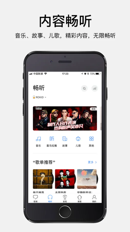 • 挑选喜欢的音乐和音频内容, 并通过 APP 遥控播放。