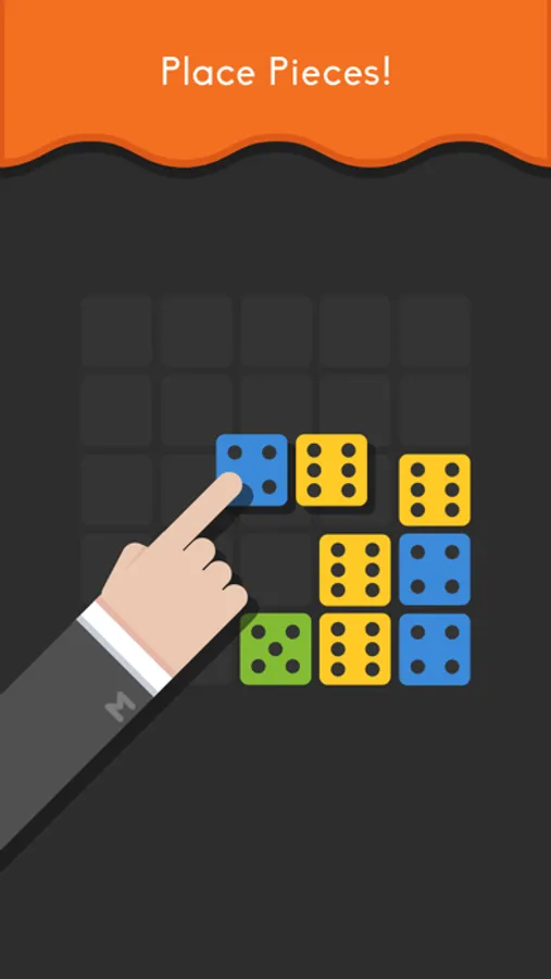 • Place three dice blocks with the same number and colour next to each other to merge them horizontally, vertically or both. You can also rotate blocks before placing them on the grid!