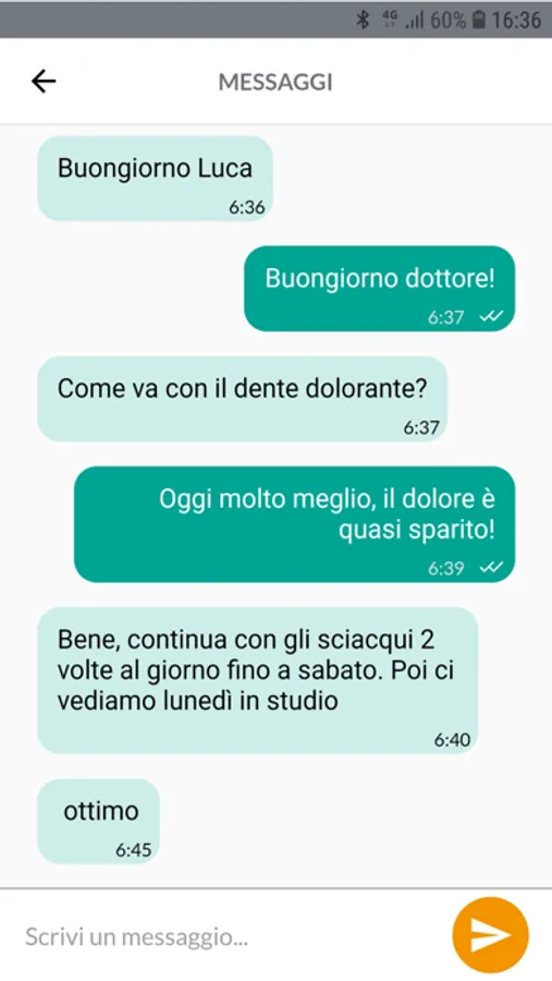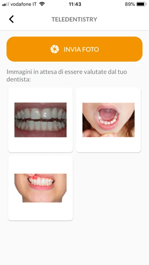 Puoi inviare foto del tuo cavo orale al dentista dalla sezione TeleDentistry, ricevendo un riscontro nell’apposita sezione di notifiche personali.