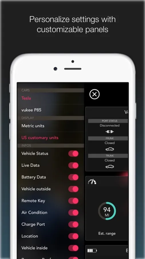 Disclaimer: This software and documentation do not come from nor is endorsed by Tesla Motors Inc. Use this app at your own risk. The author does not guarantee its proper functioning. This app attempts to use the same interfaces used by the official Tesla App(s). However, you are responsible for any changes to your car caused by using this app. Use of this app can change the settings on your car and we not liable for any damages to you or your car in conjunction with the use of this app.