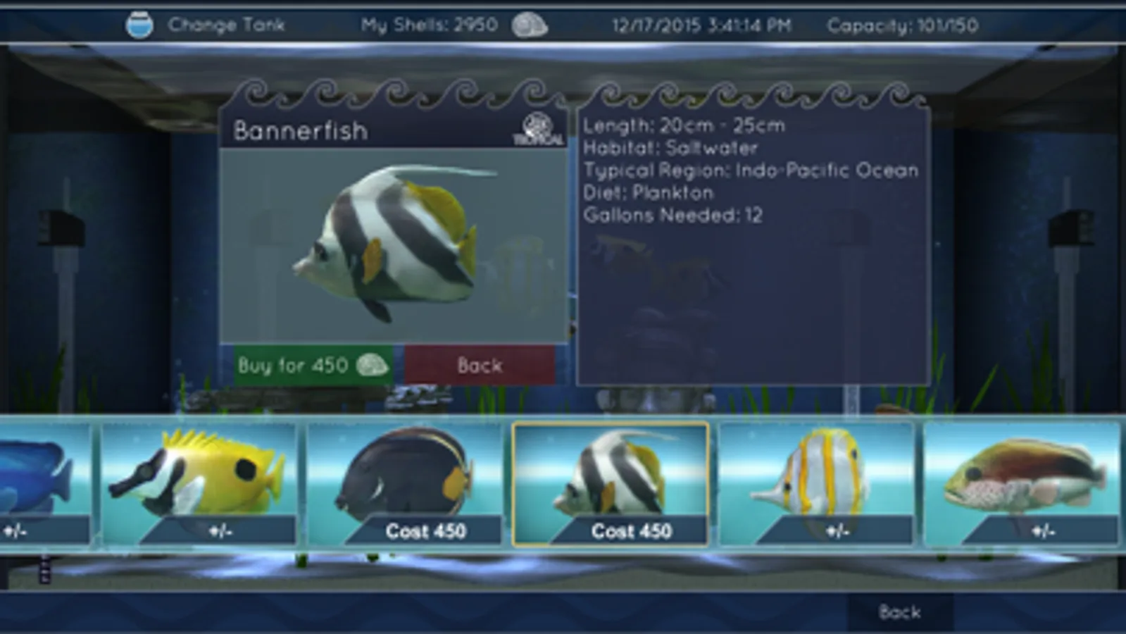 Choose a tank then change the floor, walls, decoration – and of course fish – to make the aquarium YOU want!