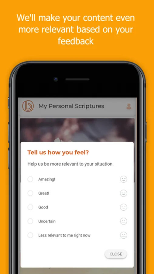 When life throws you a curve, use the Personalize My Verse Feed button to adjust your messages on-the-fly to reflect your current needs.