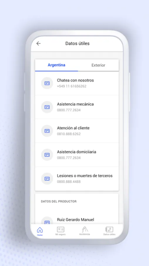 - Consultar teléfonos útiles: Servicio de asistencia mecánica, Atención al cliente, Asistencia domiciliaria y Denuncia de Siniestros.