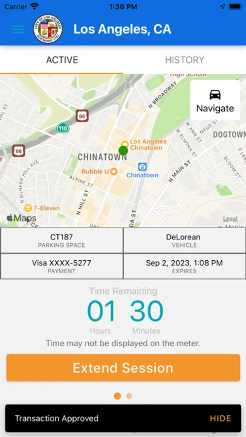 Never get a parking ticket or have your car towed again. Park Smarter™ provides real-time notifications to remind you when your meter is about to expire. If you need more time, you can extend your session right from the app.