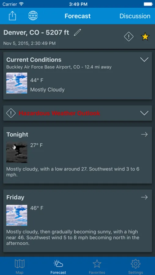 Not only are NOAA forecasts the most accurate, they provide unique point forecasts for every square mile which take into consideration all the variables affecting the weather at that point, such as altitude. This is especially useful in locations with highly dynamic weather patterns and is a great tool for being outdoors.