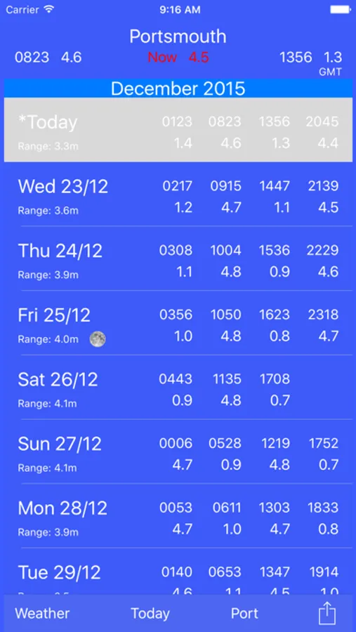 Once you have purchased the data, this app will allow you to view UKHO standard port tides up to a year in advance.