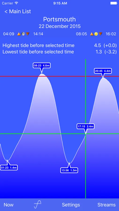 Absolute Tides also makes anchoring easy by calculating the maximum and minimum tides beween the current time and any selected future date/time.
