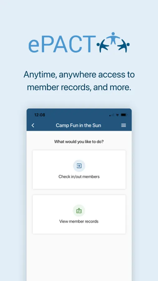 The ePACT Admin App allows authorized users to securely access critical member information day-to-day and in an emergency, including in offline mode. Staff can quickly and easily view medical and contact details, sign members in and out, or send messages direct from their smartphone or tablet.