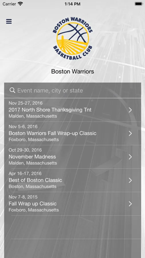 The Boston Warriors Basketball app will provide everything needed for team and college coaches, media, players, parents and fans throughout an event.