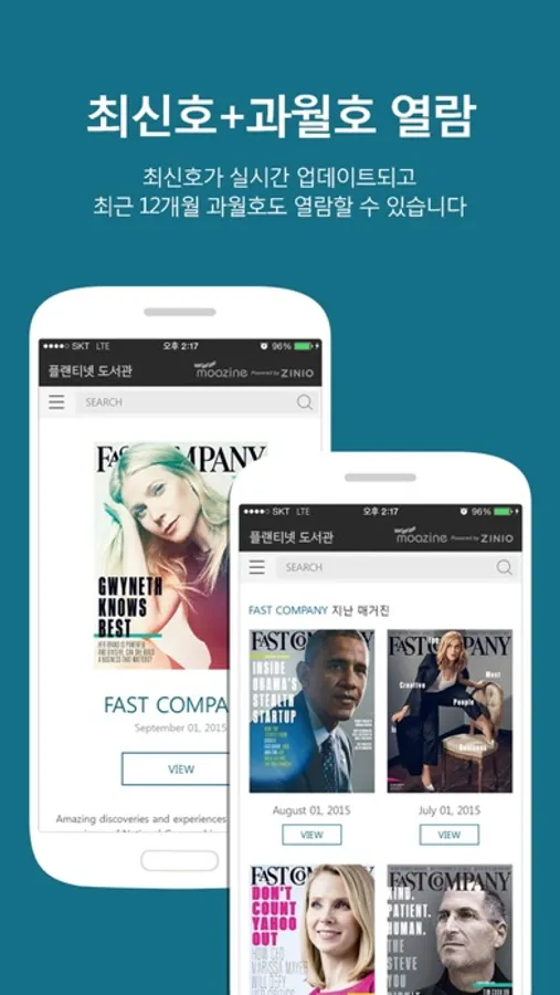 - 잡지별 발행 주기에 따라 최신호가 실시간 업데이트되고, 과월호가 최근 12개월치까지 제공됩니다.