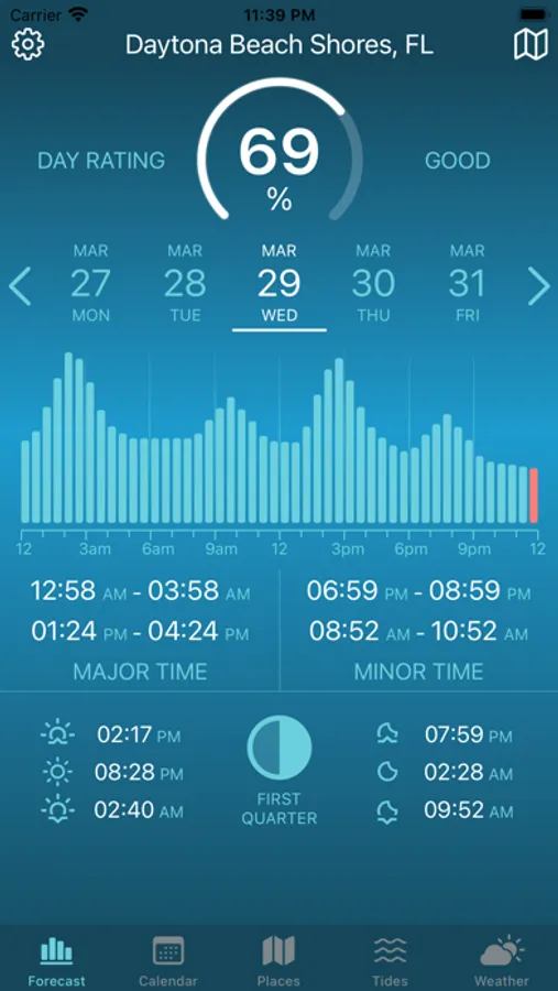 Use Fishing & Hunting Solunar Time to plan your trips to fishing or hunting in order to maximize your chances of success! Save your favorite places using Fishing & Hunting Solunar Time for easy access to Solunar Forecasts in this places.