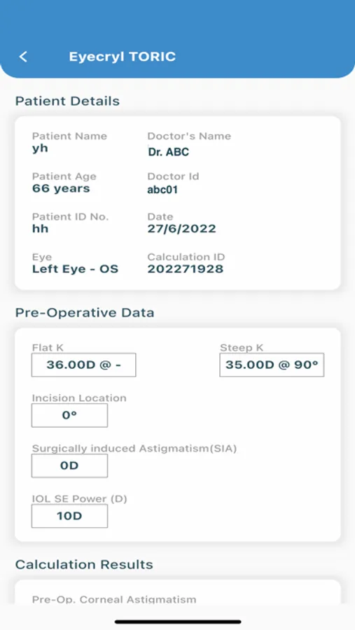 Simply enter the patient’s pre-op data in your desired Eyecryl IOL option and get the precise IOL model for your patient.