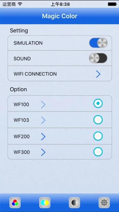1、WF100(Single point control): The main function is point to point control, that is, connected WiFi signal only corresponds to one lighting. The single point of lighting control is divided into three modes: 1>RGB mode,2>color temperature mode,3>signal color mode;