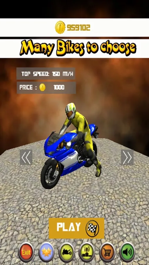Game support with 5 super motorbikes with the very lively animation, each motorbike can change 5 different color types and also can change the motorbike driver .