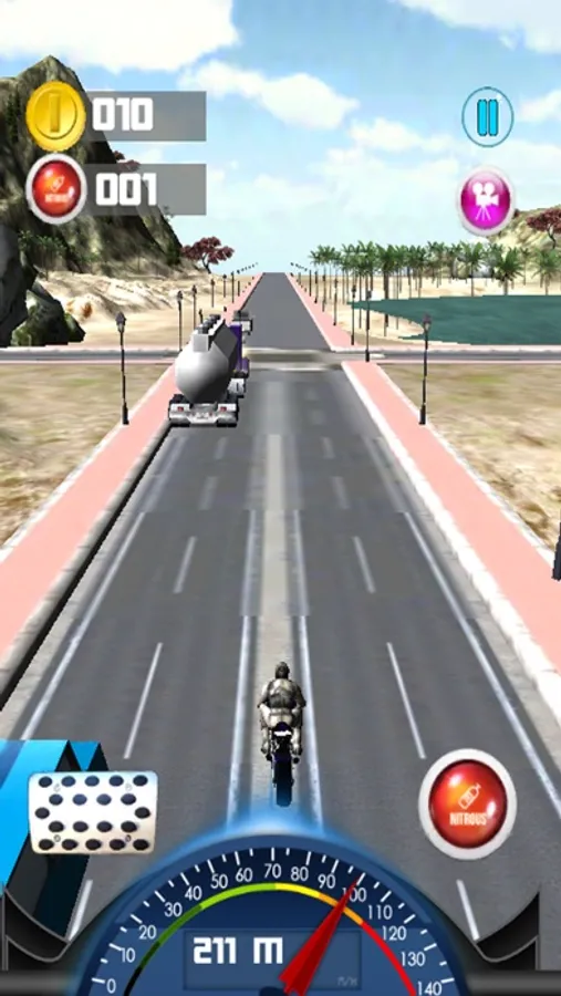 Game with very simple rules, only tilt the phone to the left or right to control moto and avoid cars on the road.