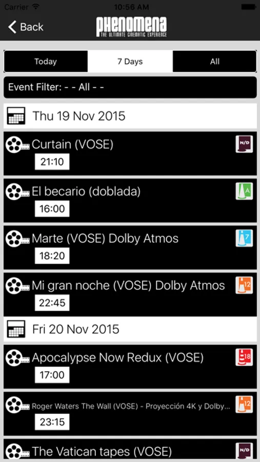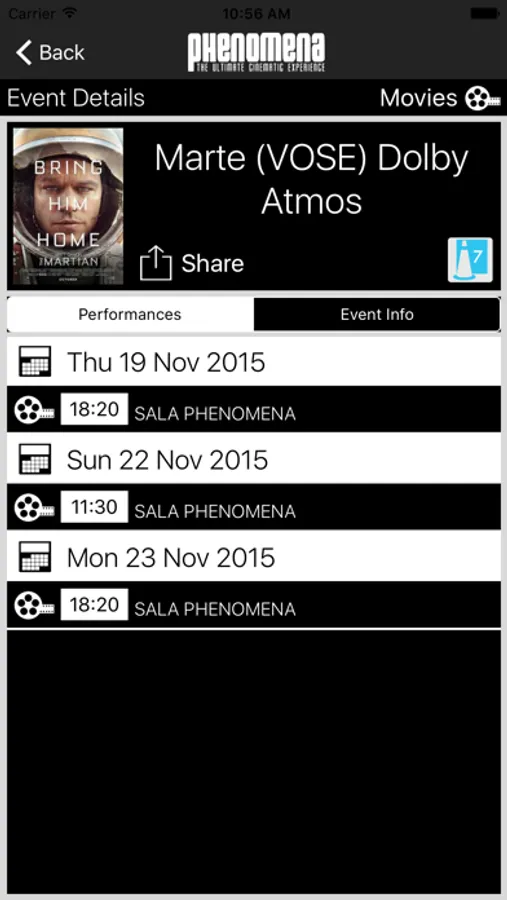 Share events, and bookings on social networks to see who wants to join you in seeing the latest films at Phenomena Experience.