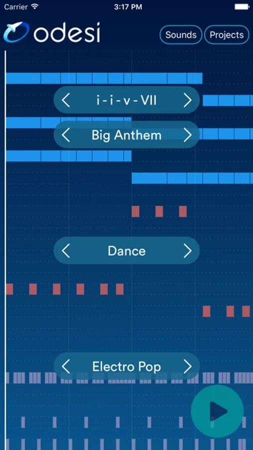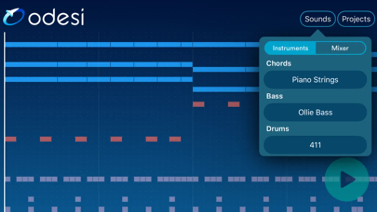Odesi Chords is a sonic sketch pad for making great 4-bar compositions. Explore different rhythms and create the perfect chord progressions, basslines, and drum beats. As quick as a flash, lay down the foundation for your next big hit. When you're done with your session, your chords, basslines and drums will be 100% finished. Jam out to your new track with a live instrument, create vocal lines and sing or rap along. Export to the desktop version of Odesi, or any of your other favorite music production software. Odesi Chords, tap into your musical genius!