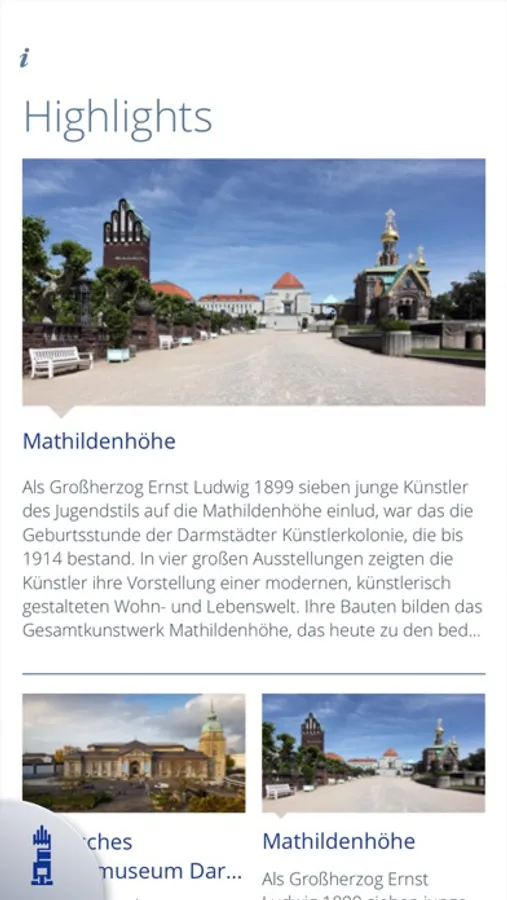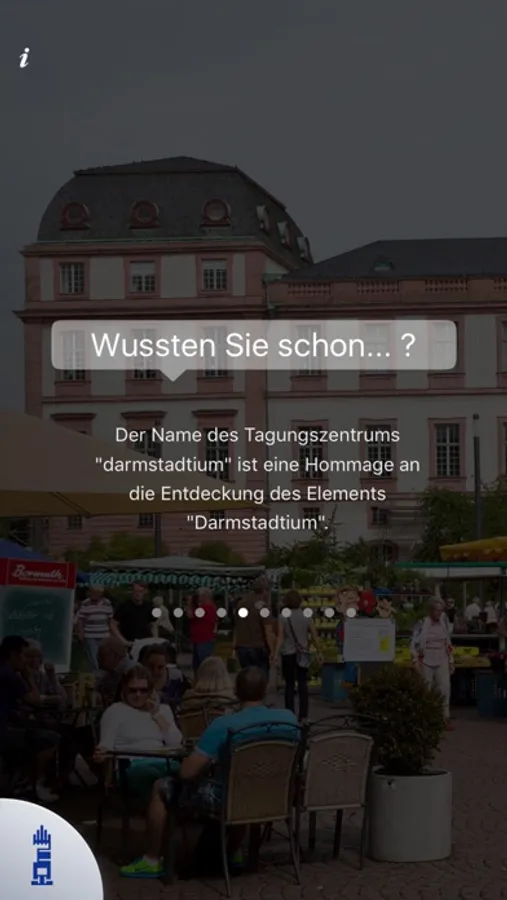 Die offizielle Darmstadt App wendet sich an Touristen und Besucher der Wissenschaftsstadt Darmstadt. Sie bietet einen Stadtplan mit Sehenswürdigkeiten und Gastronomie, einen Veranstaltungskalender und Vorschläge für Stadtrundgänge und Hörtouren mit der Straßenbahn sowie Nachrichten aus und um Darmstadt.