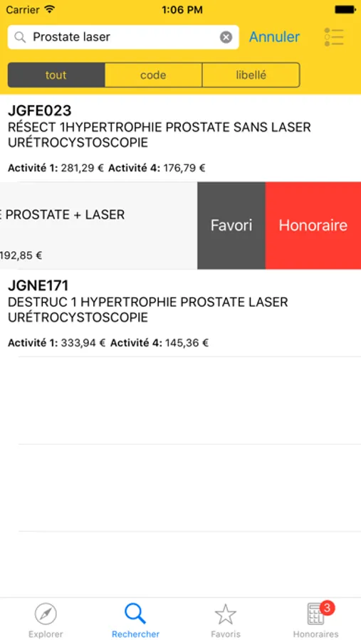 • une recherche facile et rapide d'un acte dans l'intégralité de la nomenclature en vigueur (plus de 8000 actes)