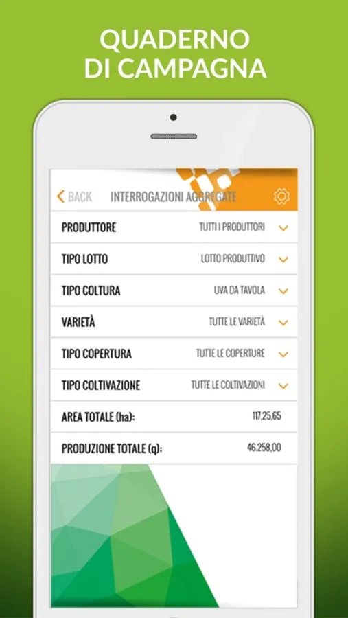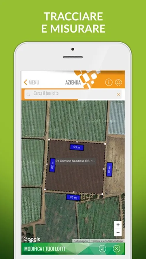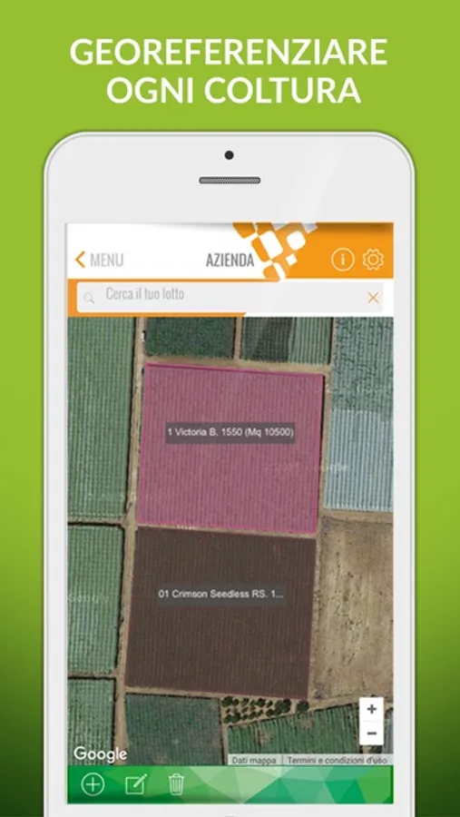 - Attribuire una serie di informazioni utili ad un determinato lotto (sesto d’impianto - anno a frutto - numero di piante, ecc…);
