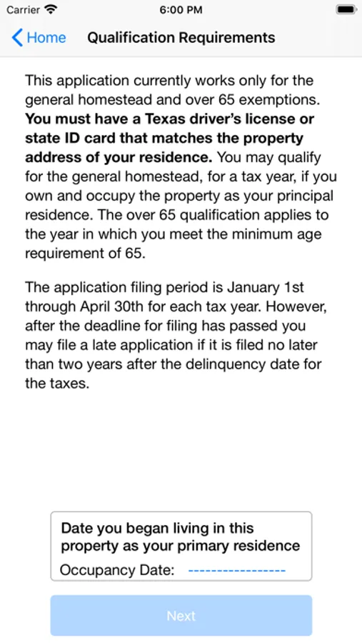 HCAD’s property records must match the name and address on the driver’s license. It may take up to 90 days for HCAD to be notified of recent sales. HCAD's Information and Exemption app allows a property owner to access key information about HCAD including customer service numbers and address. The app allows a residential property owner to submit a residence homestead exemption application by providing images of the front and back of their driver's license as well as check the status of the application.