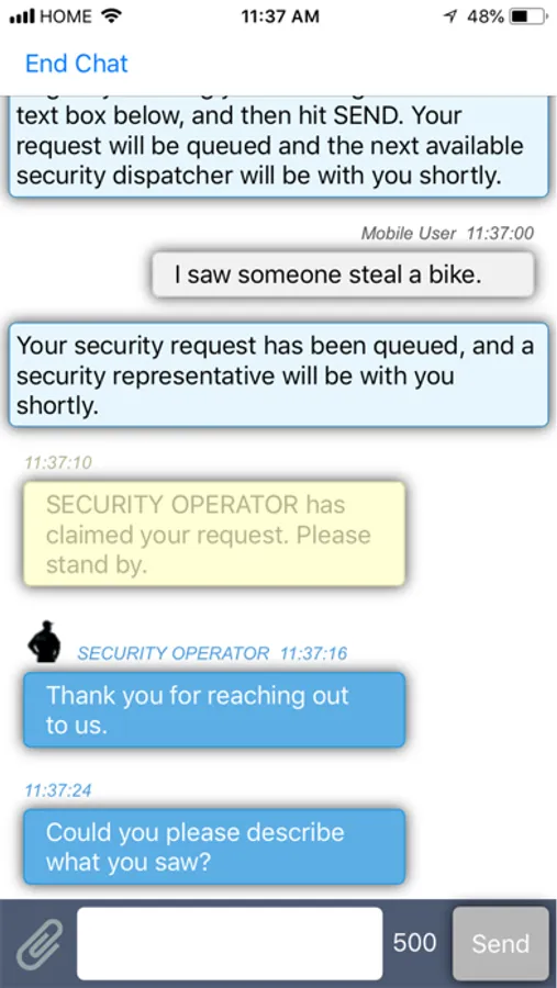 - Anonymous chat between app users and Security Operators