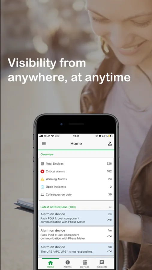 EcoStruxure IT app keeps you informed of the health of your critical infrastructures even the most remote, sends you alarm notification in the event of an issue, and provides you with the right insights to quickly resolve it.