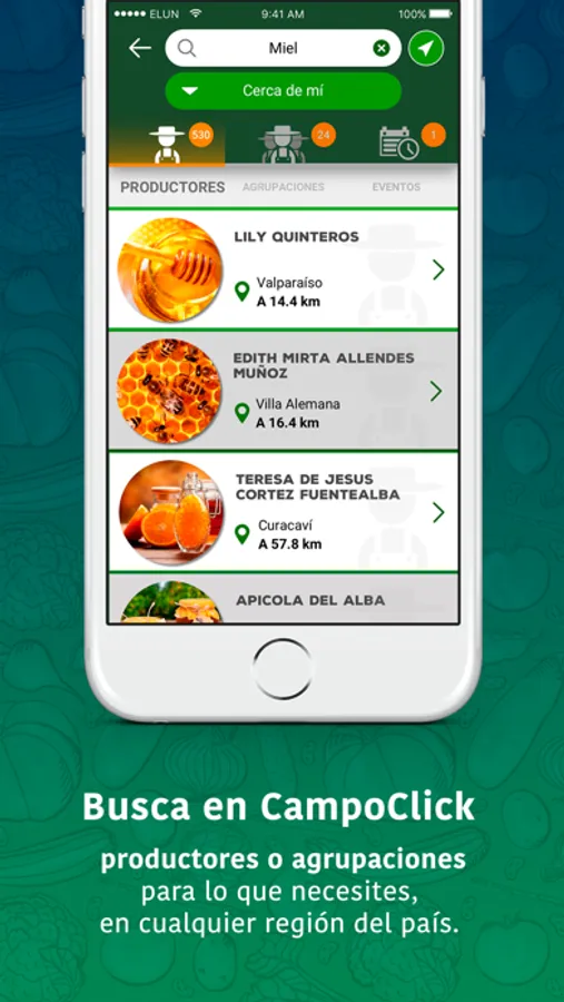 Consiste en un buscador de información acerca de Productores, Agrupaciones o Asociaciones y Eventos de la agricultura familiar campesina de manera geolocalizada con el fin de facilitar el contacto comercial al usuario para mejorar los canales de comunicación.