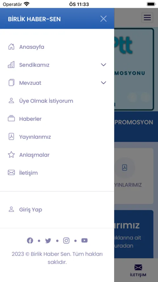 Basın Yayın ve İletişim Hizmet Kolunun genel yetkili sendikası olan Birlik Haber-Sen’in hakkında bilgi almak, sosyal medyadaki sayfalarını takip etmek, güncel fotoğraf ve videolarına kolaylıkla ulaşmak ve üyelik işlemlerini gerçekleştirmek için geliştirilmiş mobil uygulamamızdan takip edebilirlersiniz.