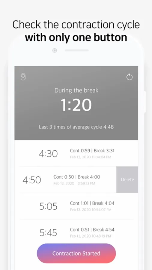 1. When the contraction starts, touch the "contraction started" button on the right bottom side of the screen.