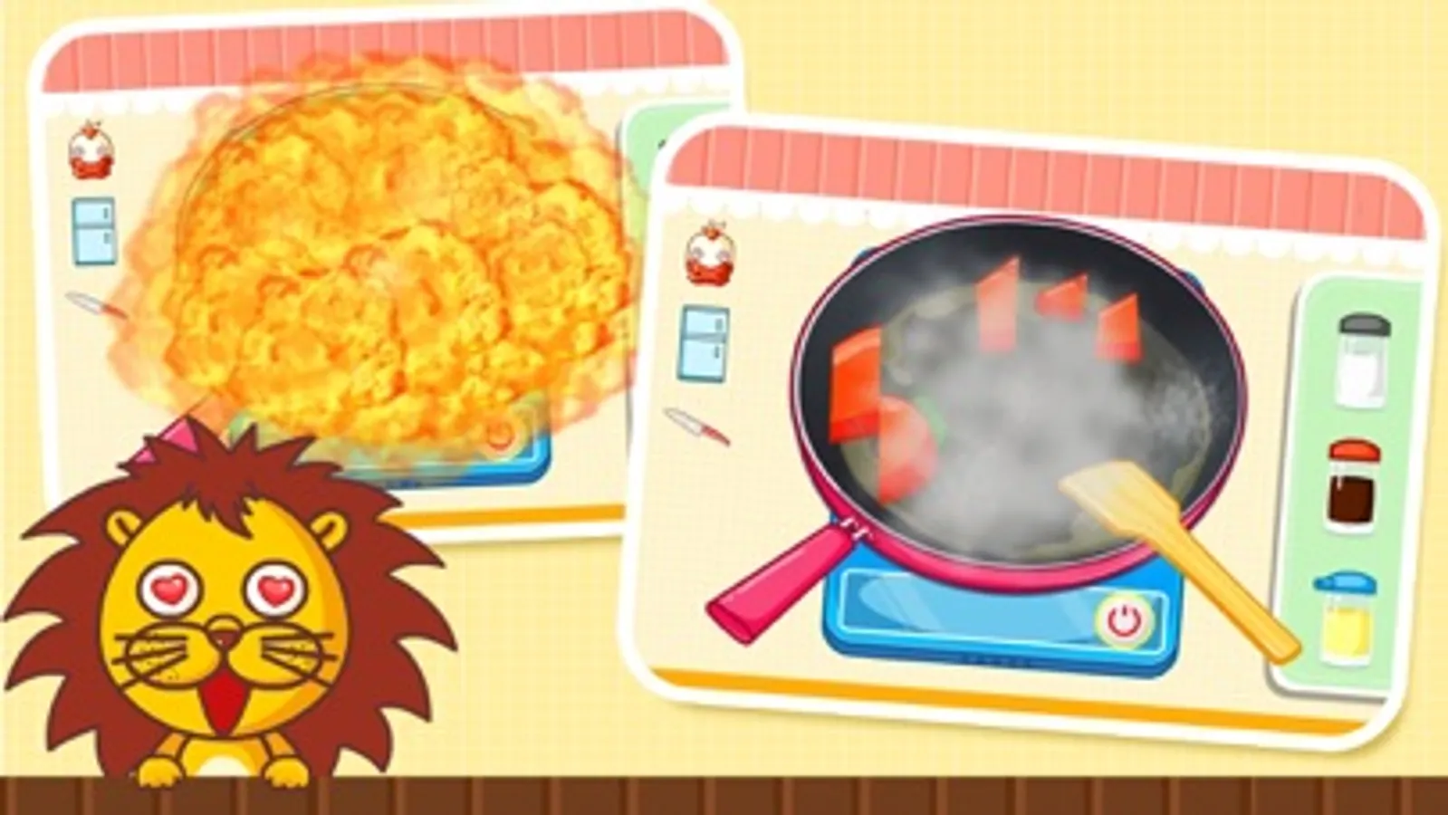 مع مؤثرات صوتية ورسومات محببة لدى الاطفال , ومحاكاه لكل الأدوات المستخدمة في المطبخ .