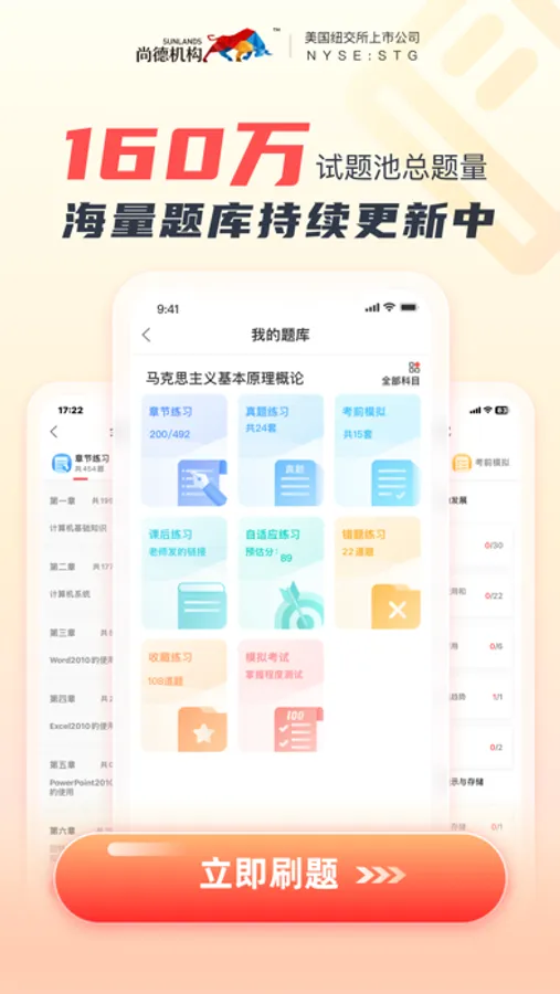 知识点切片——尚德机构的教研团队将知识点进行切片,把书本由厚变薄。每一个知识点都有对应的PPT讲义,同时再对应若干题目、视频、相应题目的讲解等,以此让考试变得不再困难。