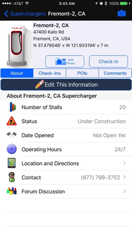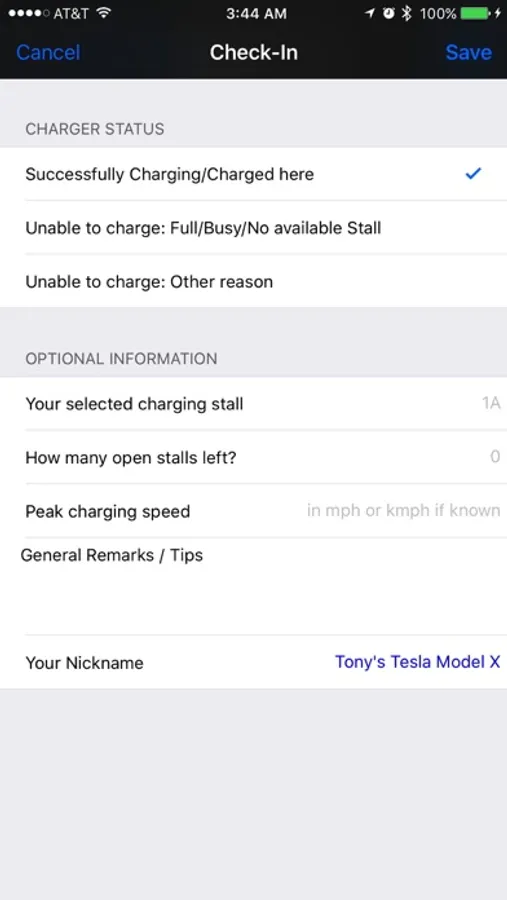 • Latest Status: Recent check-ins have the option to display how many stalls are free/busy for each Supercharger.