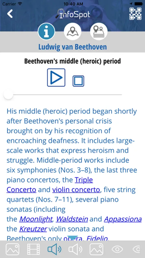 InfoSpot is a perfect tools to be used by individual artists, art galleries or museums - with the tool, you can easily and quickly create a more interactive experience with your audience by creating contents (text, picture, audio or video) for your artworks or collection of interest. InfoSpot is a great application where you can put a lot of information into one single QR-code or iBeacon. With InfoSpot you can set up discovery zones, or geographical positions located around you, where it could be explored for a more interactive learning experience.