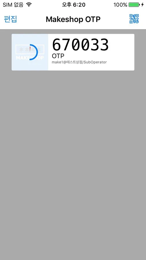 1. MAKESHOP OTP 다운로드 받아 실행하여, URL주소에서 정보를 입력한 후, QP코드를 찍습니다.
