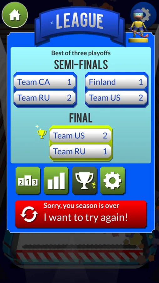 Tap Ice Hockey is a simple and fun hockey game. Two game modes. Quick match where you can engage your skills and league mode. League mode contains ten team regular season and best of three playoffs.